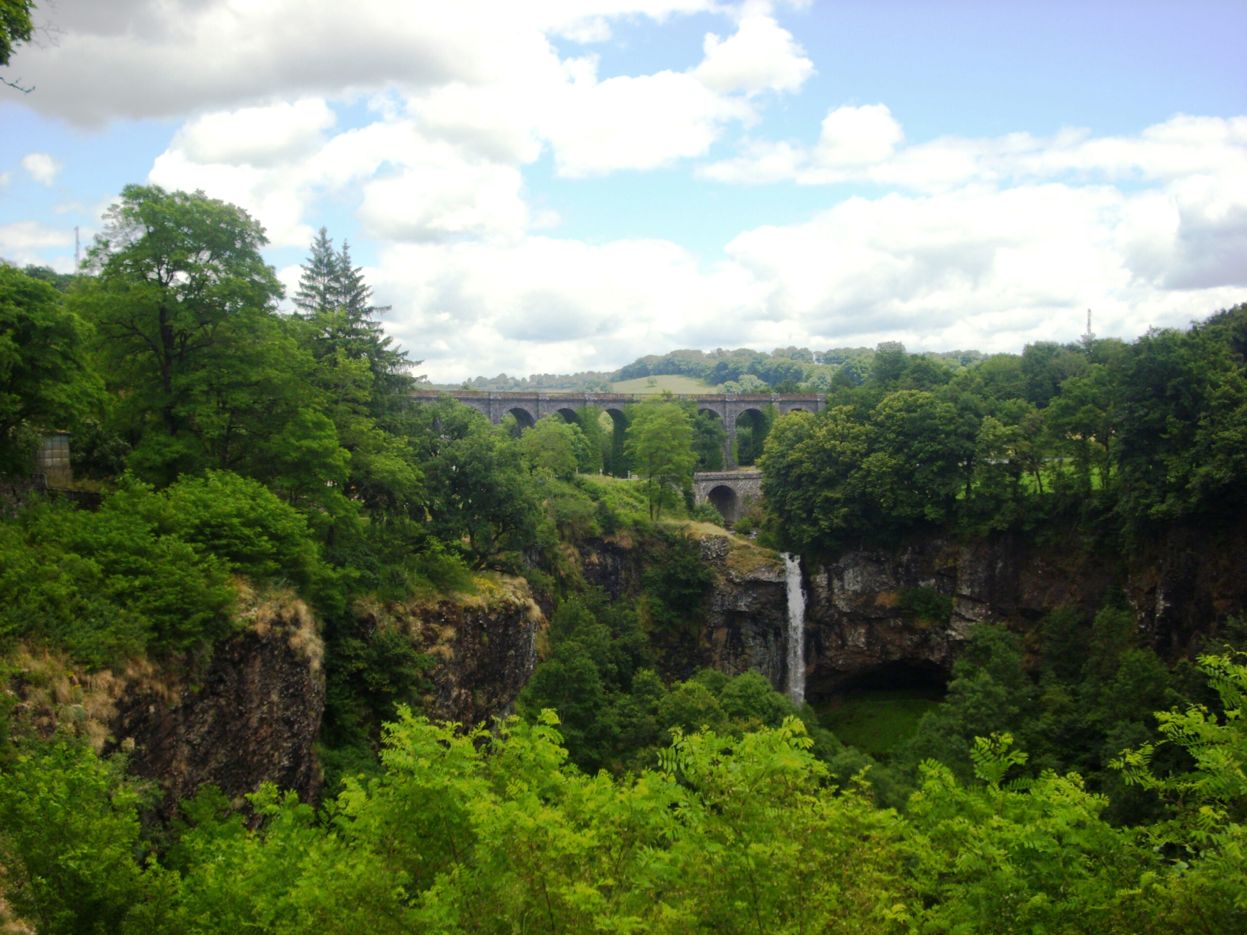 En bordure de la route nationale 122 qui relie Aurillac à Mauriac, la commune de Salins est connue par sa cascade qui se situe juste en aval de la route. Elle se situe en fin d'une coulée de lave qui forme un fer à cheval au niveau de Salins